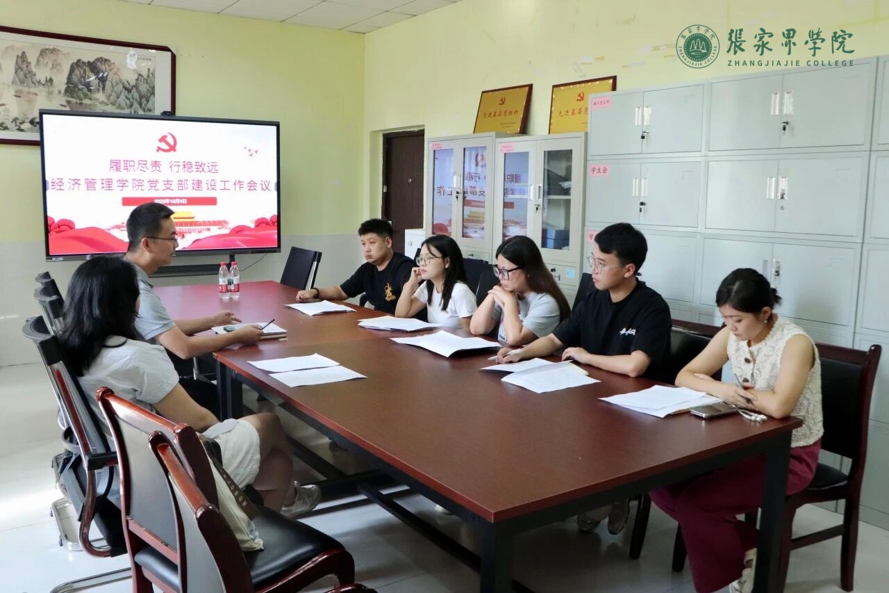 2025-10-1410月9日,经济管理学院在笃行楼2346会议室召开党支部建设工作会议。会议由学院党总支书记宋扬、副书记郑容共同主持,教工党支部书记杜青青及学生党支部书记刘萍、郭德荣、董贤斌、宋瑞婷参会。
