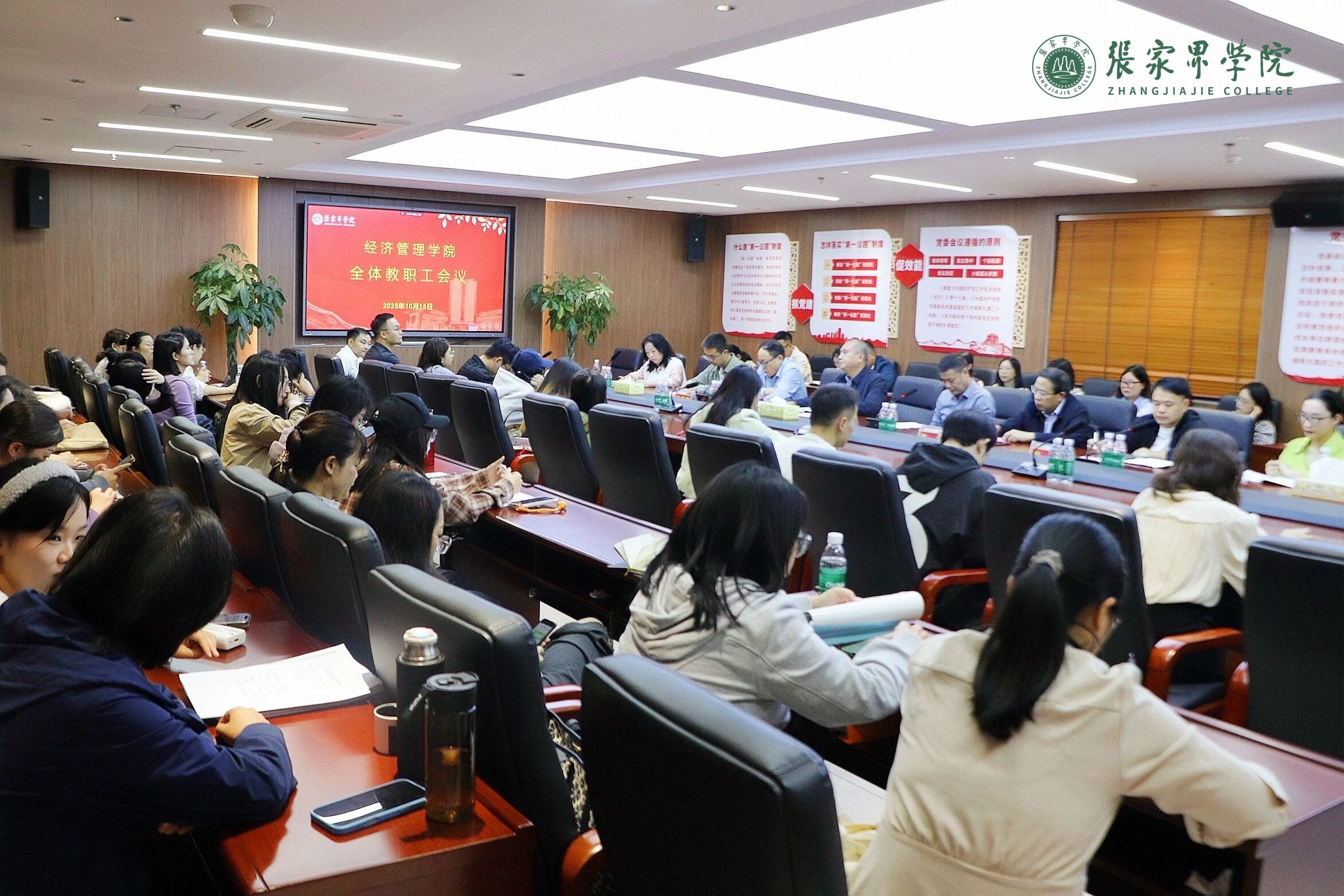 2025-10-1710月15日下午,经济管理学院全体教职工会议在望岳楼修远厅召开。会议完成院长任职交接工作,凝聚共识。校领导王常锋、陈起家出席会议,经济管理学院全体教职工参会。会议由副校长陈起家主持。