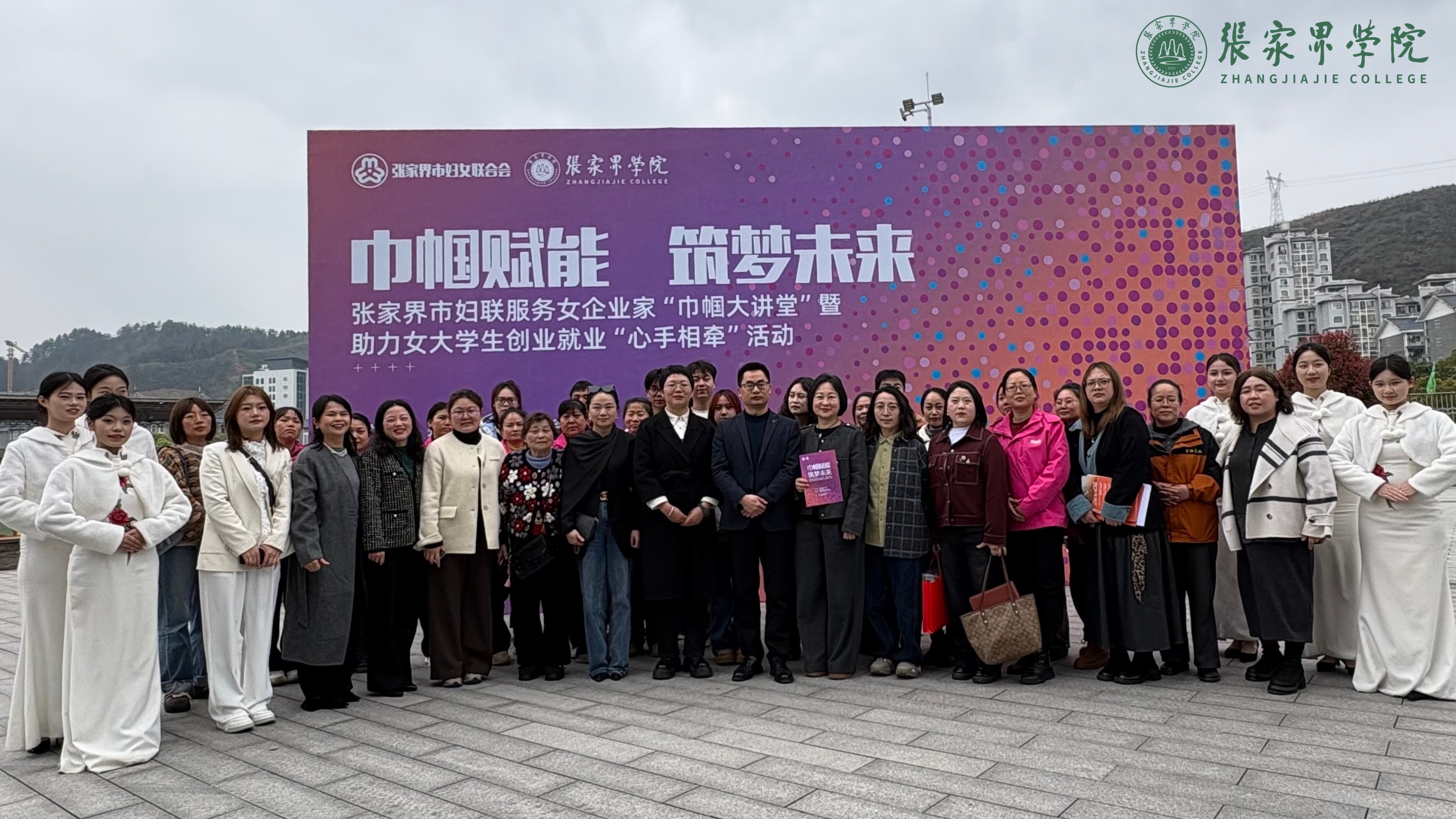 3月24日下午,张家界市妇联服务女企业家“巾帼大讲堂”暨助力女大学生创业就业“心手相牵”活动在张家界学院诸子厅举行,市妇联党组书记、主席汪晓娓,市妇联副主席粟云霞,张家界学院校长简德彬、副校长向江及各界女性代表参加活动。